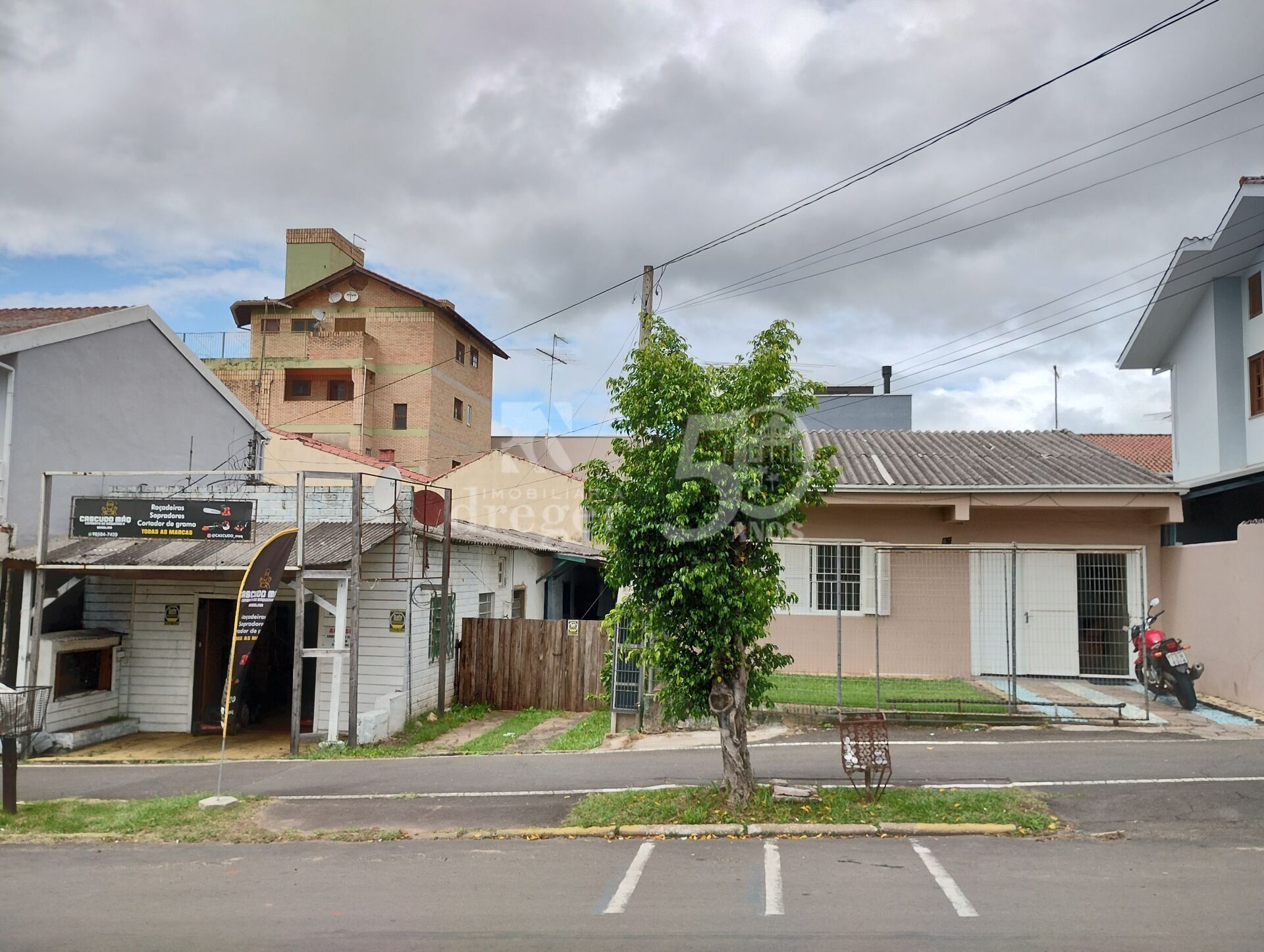 Imóvel possui uma casa de alvenaria com 77,00m2 e uma sala comercial com 80,64m2.