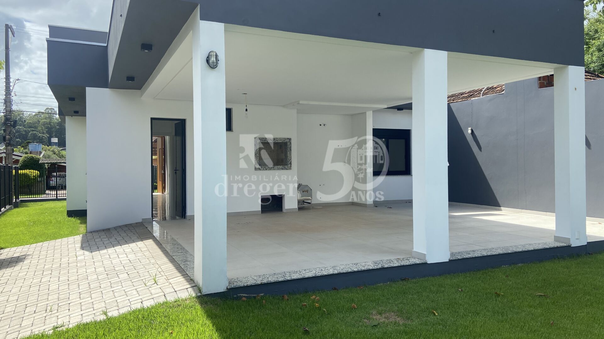 Residência nova, excelente padrão construtivo, 3 suítes, garagem para 2 carros (acomoda 4 carros), terreno de esquina com 300,00m2, ambientes integrados, aberturas dos dormitórios com controle elétrico. Garagem com churrasqueira pensada para servir de salão de festas.