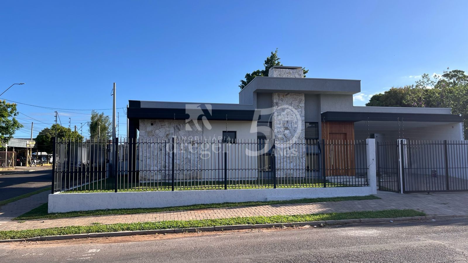 Residência plana, de esquina, a poucos metros da Av. Brasil e pista de atletismo.