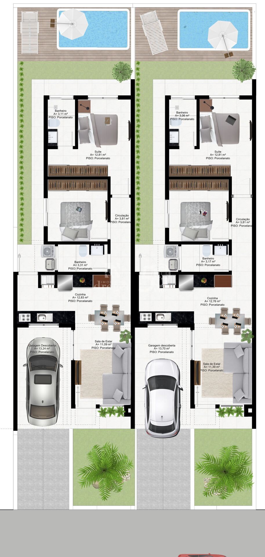 2 Dormitórios, sendo 1 suíteGaragens