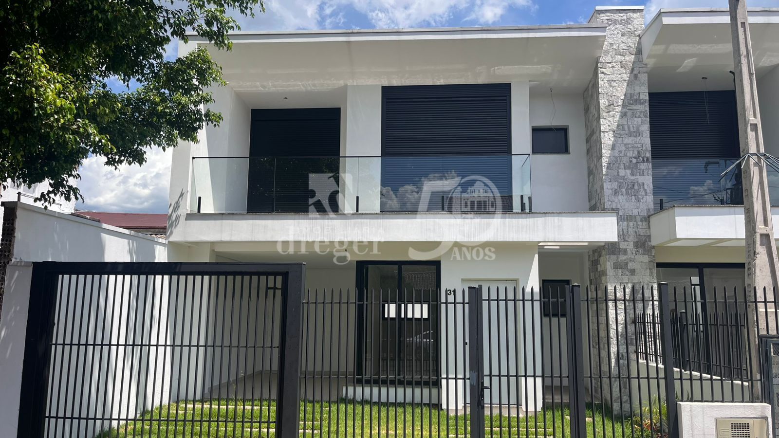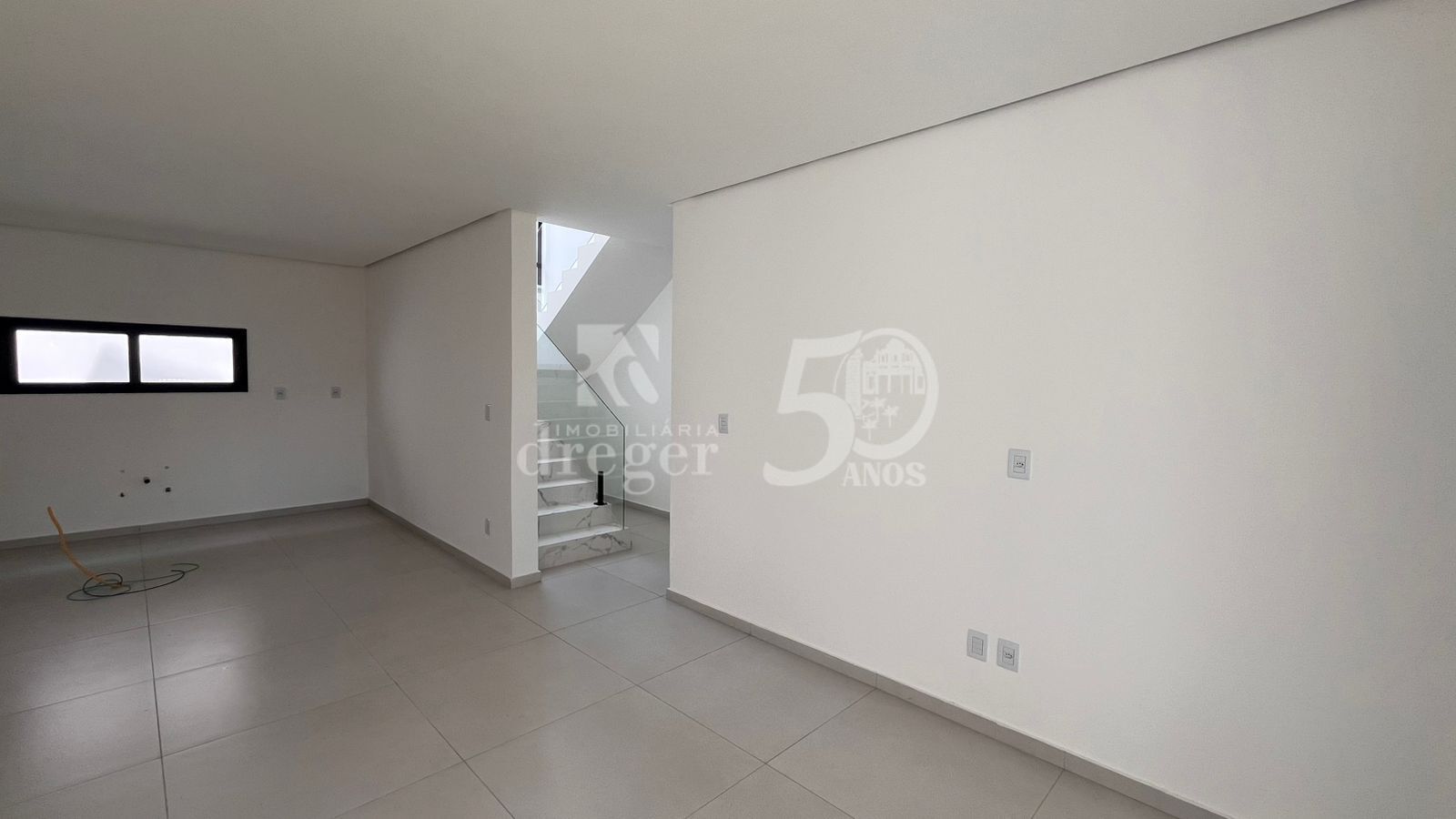 Sobrado contemporâneo com 134,21m², composto por 3 dormitórios, sendo 1 suíte, sala de estar com dois ambientes e cozinha com churrasqueira integradas.